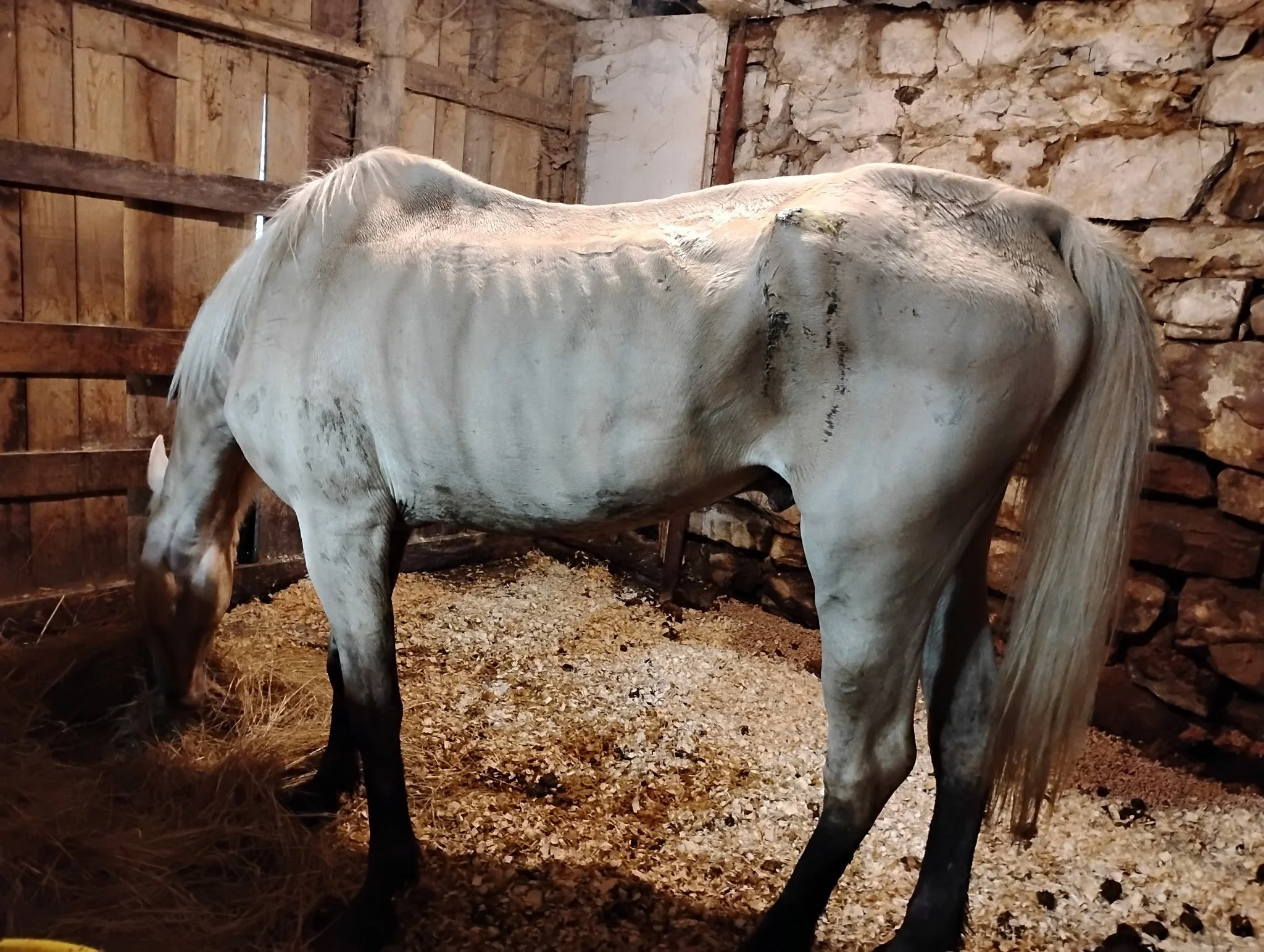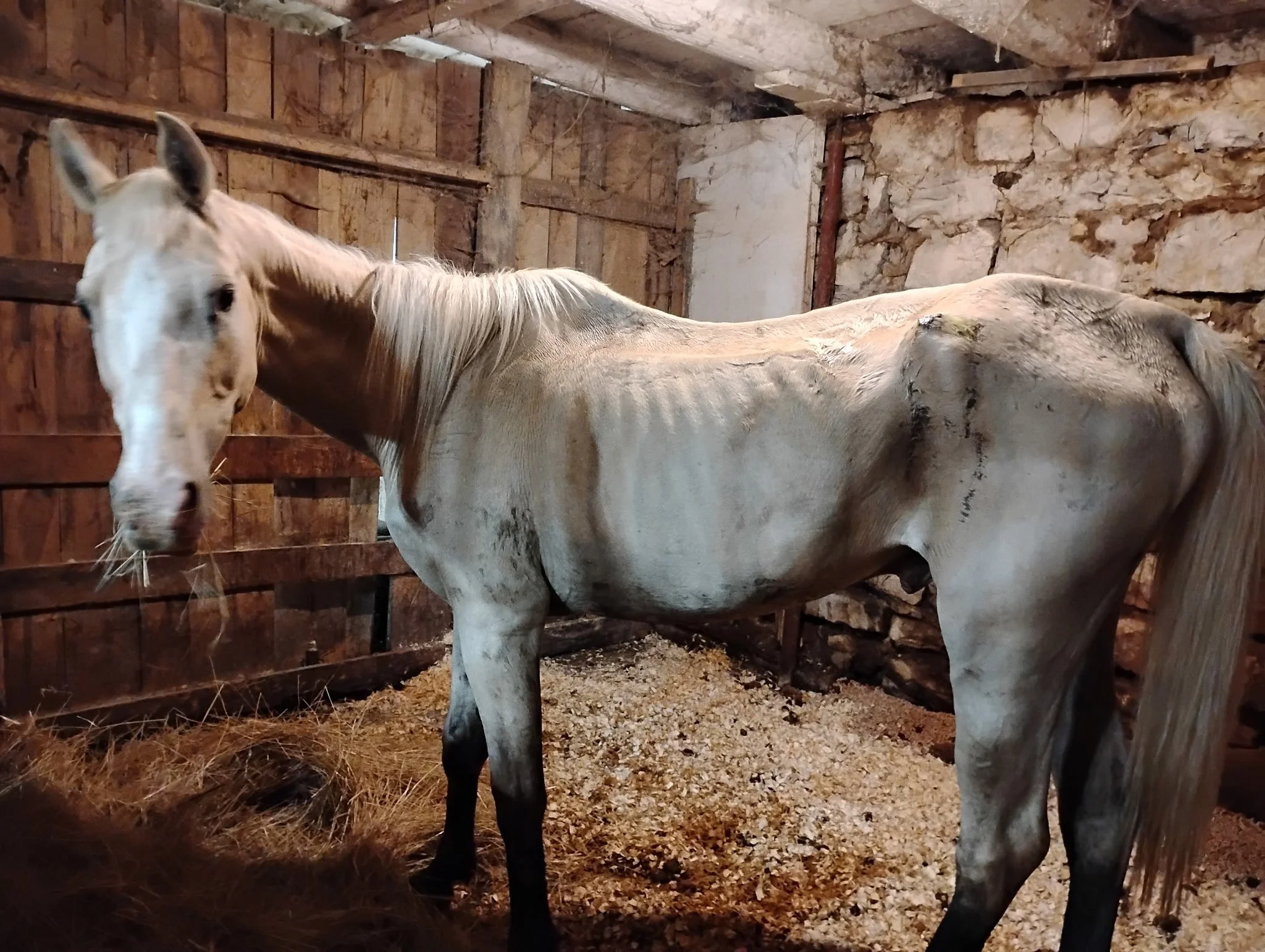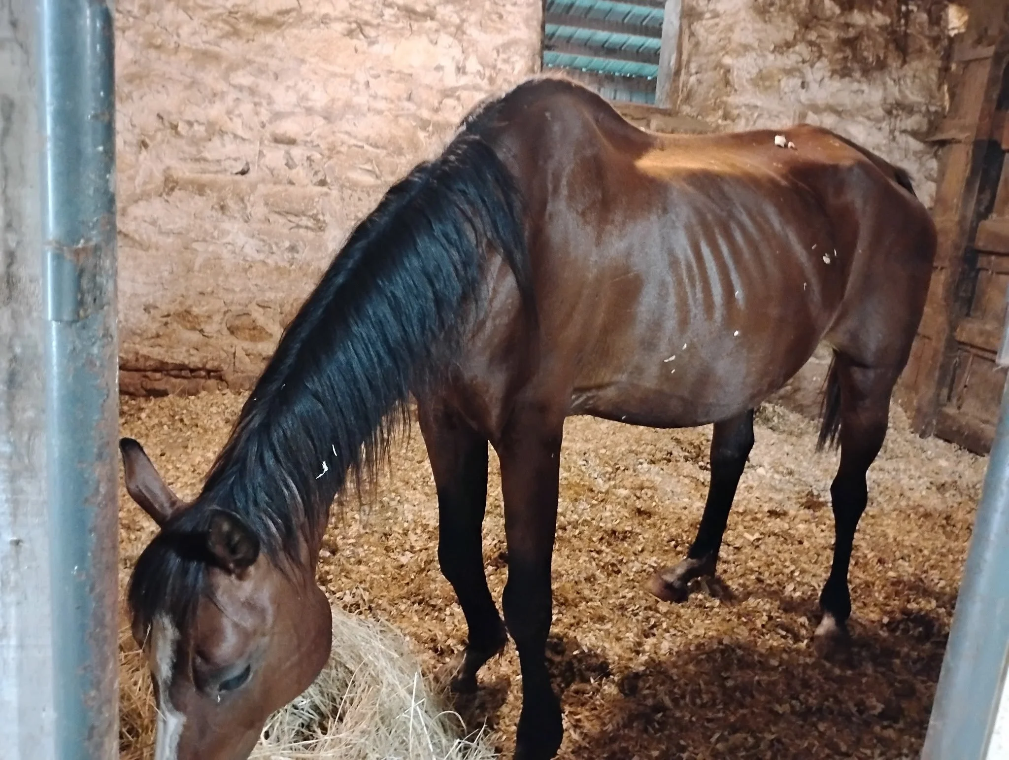 Robin’s story is one of quiet strength and heartbreaking uncertainty. When we were called to assist in a cruelty case, we had no idea that one of the mares we were helping was carrying new life inside her. She was so dangerously underweight, her ribs clearly visible, that pregnancy wasn’t even suspected — until our vet checked her during loading and found a faint but strong heartbeat.
