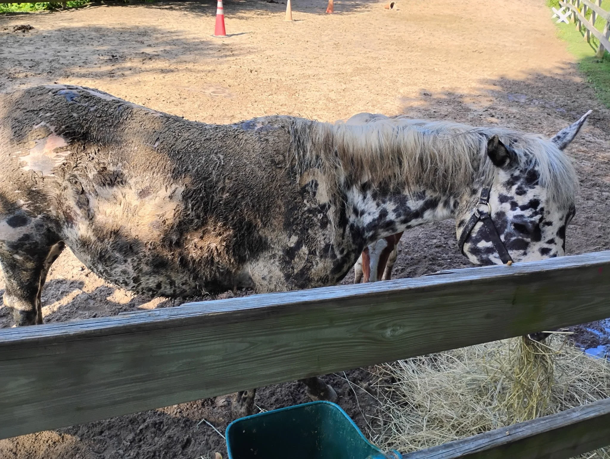 CC was so caked in manure that you couldn’t see her beautiful spotted coat